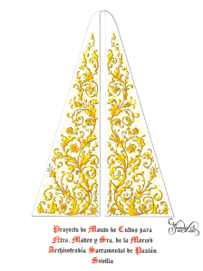 Durante los cultos de este año, Nuestra Señora de la Merced estrenará un nuevo manto blanco de vistas bordado en oro, diseñado y ejecutado por el taller de José Antonio Grande de León.