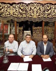 En la mañana del pasado sábado, la Junta de Gobierno de la Hermandad de las Siete Palabras se reunía con su homónima de la Hermandad del Cautivo de Bollullos Par del Condado para oficializar la venta de las antiguas bambalinas del palio de Nuestra Señora de la Cabeza.