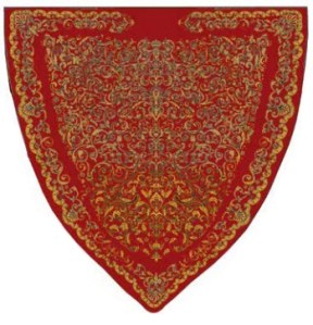 La pieza fue ejecutada en el taller de Leopoldo Padilla Vic entre 1959 y 1962, utilizando como soporte terciopelo rojo y siguiendo en todo momento el estilo ornamental de las bambalinas del paso de palio. Cuando se comenzó a gestar este manto, allá por 1958, la corporación de la Calzá firmó un contrato en el que se detallaba que esta pieza del bordado se iría pagando en cuatro fases. Los problemas económicos hicieron que el segundo y el tercer plazo se pagasen a contrarreloj, pero el cuarto nunca se llegó a efectuar y Padilla entregó el manto tal y como se encontraba en aquel momento.