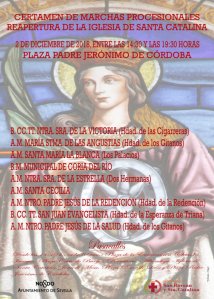 Como bien se adelantó fechas atrás, la iglesia de Santa Catalina reabrirá al público el próximo 25 de noviembre, tras más de catorce años en obras. Con motivo de ello, se organizará un certamen de bandas el domingo 2 de diciembre a las 14.30h en la plaza Padre Jerónimo de Córdoba, contando con el respaldo del Ayuntamiento de Sevilla, de las hermandades del templo y de la feligresía.