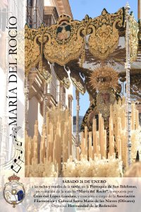 El compositor Cristóbal López Gándara ha compuesto una nueva marcha procesional dedicada a la Dolorosa de la Hermandad de la Redención titulada «María del Rocío». La misma será estrenada en un concierto que ofrecerá la Asociación Filarmónica Cultural Santa María de las Nieves (Olivares) el próximo 26 de enero a las 20.30h en la parroquia de San Ildefonso.