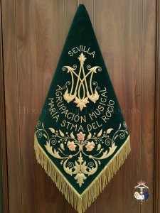 José Aguilar ha sido el encargado de diseñar el primer banderín de la Agrupación Musical María Santísima del Rocío, siendo realizado por Rosendo Jiménez. La obra ha sido ejecutada sobre terciopelo verde, color característico del cortejo procesional de la Dolorosa de la Hermandad de la Redención. La presentación se llevó a cabo anoche a los pies de la Santísima Virgen.