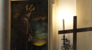 6ª estación. Calle Parras. Ante el azulejo dedicado a Miguel Loreto. (Armaos)
