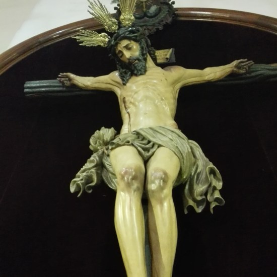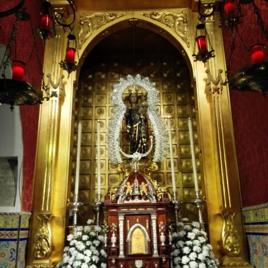 Durante todo el fin de semana, la parroquia de San Julián se convirtió en un hervidero de devotos, hermanos y cofrades que se acercaron a contemplar la belleza de María Santísima de la Hiniesta en su altar de besamanos. Portentoso y mayestático, pues mostraba sobre una escalinata el sillón de la realeza de la Santísima Virgen. La Dolorosa, recientemente intervenida por Pedro Manzano, lucía la nueva saya que el taller de Manuel Solano ha confeccionado partiendo de un diseño de Gonzalo Navarro.