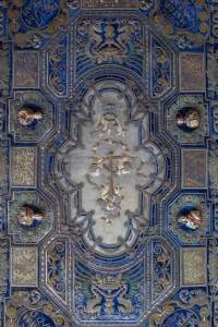 Por último, hay que recordar que el techo sigue un diseño arquitectónico de estilo palaciego, figurando en el centro el Santo Sudario, titular de la hermandad del Miércoles Santo.