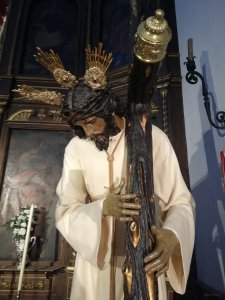 Todo aquel que visite durante estos días la parroquia de San Roque se llevará la sorpresa de contemplar a los titulares de la corporación del Domingo de Ramos en el altar mayor del templo. Este hecho insólito se debe a las obras que se están desarrollando en la zona de la izquierda de la iglesia, en la nave del Evangelio, justo donde se encuentran los altares del Santísimo, San Juan, el Señor de las Penas, la Virgen de Gracia y Esperanza y el Cristo de San Agustín.