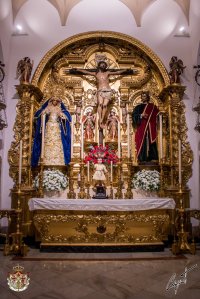 El viernes regresó a la parroquia de Santa Catalina el Santísimo Cristo de la Exaltación tras dieciocho días fuera del culto. Desde el 24 de julio, las imágenes de la Virgen de las Lágrimas y San Juan ocuparon la capilla sacramental del templo.