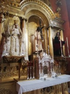 Los titulares regresaron a sus respectivos altares el pasado sábado, al igual que la Virgen de la Sierra. Así pues, aún no hay una fecha determinada para que se desarrollen unas intervenciones que volverían a llevar al Señor de las Penas, la Virgen de Gracia y Esperanza, San Juan y el Santo Crucifijo de San Agustín hasta el altar mayor del templo. Y es que solo han estado poco más de una quincena las imágenes en dicha ubicación inusual.