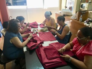 Desde el pasado 30 de julio, el taller de costura de la Hermandad de Pasión y Muerte viene trabajando en la ejecución de unas nuevas dalmáticas y ropón de pertiguero que se utilizarán en la salida procesional de la Virgen del Buen Aire y en el rosario vespertino de la Virgen del Desconsuelo y Visitación.