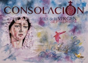 El pasado viernes fue presentado, en la sede de la Hermandad de la Sed, el cartel del mes de la Virgen. En esta ocasión, el autor del mismo ha sido el joven artista José Tomás Pérez Indiano, quien ha titulado a su producción como «Un mar de fe. A Cristo por María, consoladora de los afligidos».