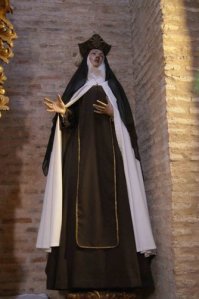 Mientras Ella está lejos de la parroquia de Santa Ana, la imagen de Santa Teresa de Jesús, talla anónima fechada en el siglo XVIII, ocupa su altar.