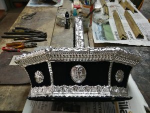 La Hermandad de la Carretería ha anunciado que, de cara al Viernes Santo de 2020, restaurarán todos los canastos de los diputados. Las 40 piezas se están desmontando, restaurando y plateando en el taller de orfebrería Amores Raya.