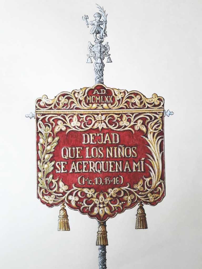 El diseño es de Javier Sánchez de los Reyes, el taller de bordados de José Antonio Grande de León realizará el paño bordado en oro y Orfebrería Villarreal realizará el asta en plata rematada con la imagen de Zaqueo.