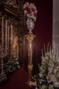 El taller de Nuestra Señora del Carmen ha restaurado y dorado las columnas de la capilla de los Marineros. Tras dejarse sumergidas 24 horas en serrín húmedo para que quedasen en plena madera, se les limpió todo tipo de traza y se restauraron los problemas de carpintería. Posteriormente se retallaron, lijaron y doraron con oro fino de ley de 23 3/4 quilates de Manetti.