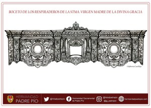 La Hermandad de Padre Pío ha anunciado que el taller de Orfebrería Castilleja viene trabajando en la confección de unos nuevos respiraderos para el paso de palio de la Virgen de la Divina Gracia. Hasta la fecha, y desde 2014, empleaba los primitivos del palio de la Virgen de Gracia y Esperanza de la Hermandad de San Roque.