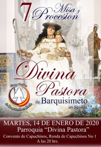 La Hermandad de la Divina Pastora de Barquisimeto es filial de la del estado venezolano de Lara y reside en el convento de Capuchinos de Sevilla. Esta corporación celebra la solemne eucaristía en honor a su titular cada 14 de enero. Este año, al igual que viene haciendo desde 2013, celebrará la función solemne a las 20h y a las 20.30h será la procesión por el interior del patio del convento. La ceremonia estará presidida por Fray Eduardo Rodríguez Márquez (Guardian del Convento) y se realizará en el mismo patio.