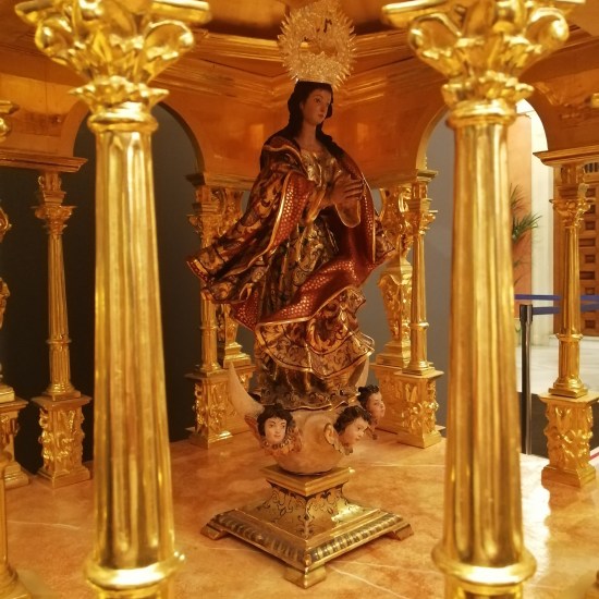 El pasado miércoles, nos trasladamos hasta la exposición que acoge la Fundación Cajasol sobre el cincuenta aniversario de la Hermandad de la Sed. Allí se puede contemplar una rica muestra documental y artística, con varias salas que hacen un extenso repaso a la historia de la corporación. Sin duda, el epicentro de la misma es el paso del Santísimo Cristo de la Sed, así como el área dedicada a «La Virgen de los ojos azules», con las sayas, palio y ajuar de la Virgen de Consolación.