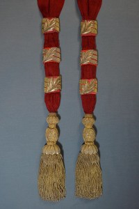 Así pues, se procedió a aspirar el fajín con pinceles y brochas, eliminar los zurcidos ya que podían ocasionar más roturas y reintegrar las pérdidas que sufría la pieza con un hilo de canutillo y tul teñido. Finalmente, se procedió a montar los pasadores con un hilo de seda comercial.