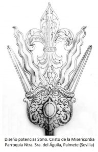 El Grupo Parroquial de la Merced de Palmete ha hecho público el diseño del primer juego de potencias del Santísimo Cristo de la Misericordia, creadas con motivo del 50 aniversario de la llegada del Señor a la parroquia de Nuestra Señora del Águila. Las está ejecutando el orfebre Joaquín Ossorio y se bendecirán el próximo 14 de septiembre.