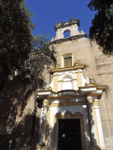 Se acerca así a Sevilla un templo fechado en 1616, aunque sus obras se iniciaron en 1607. La hermandad la primera en ayudar, tenía escasos medios: solo 69 reales de fondo y 10.000 maravedíes de renta anual. El V. P. Cristóbal busca a otros bienhechores, y fue el más generoso D. Melchor Maldonado de Saavedra, Juez Oficial y Tesorero de la Casa de Contratación que con limosnas propias y solicitadas a los que seguían la carrera de Indias le ayudó grandemente, gastándose en todo el edificio más de 20.000 ducados, quedando incorporada a la iglesia la antigua Torre-Puerta como compás de acceso.