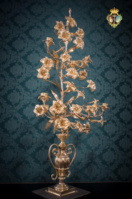 De factura francesa, cuentan con un jarrón central, del que emergen flores de azucenas, algunas de ellas con sus respectivos cubillos para colocar velas. Será empleado en sus cultos internos.