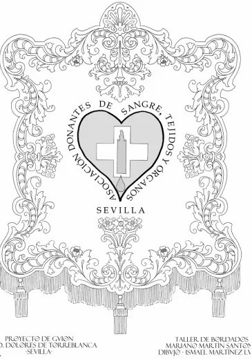 Estará ejecutado en terciopelo rojo, bordado a realce en oro fino. En la parte central figurará el escudo de los donantes de sangre de Sevilla y el lema de esta asociación, figurando en la parte trasera la fecha 2016, en la que fue concedida la medalla de oro de la ciudad a la corporación. Además, son «socios de honor» de la Federación Andaluza de Donantes de Sangre.
