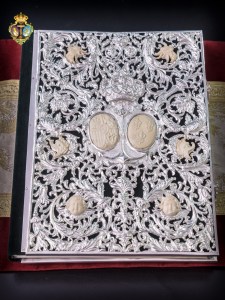 Respecto al exterior del libro, el trabajo de orfebrería ha sido realizado por Manuel de los Ríos e Hijos (Orfebrería Andaluza).