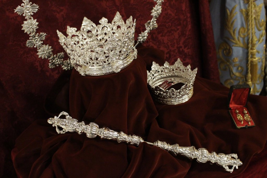El juego lo completa un cetro, aureola y pendientes por el aniversario fundacional.