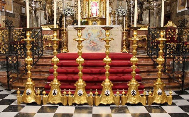 Los carmelitas descalzos de la iglesia conventual del Santo Ángel han invertido sus esfuerzos en la restauración de los hachones litúrgicos, unas piezas de 1860. Restauradas por Jairo del Toro y Antonio Vera, se ha procedido a la eliminación del polvo, el hollín y la cera, así como la recuperación del dorado.