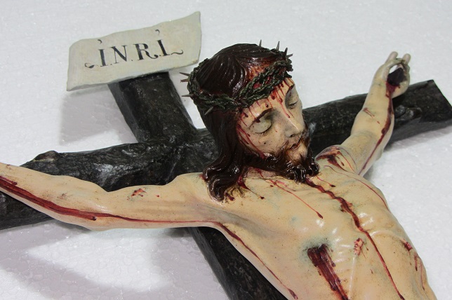 El artista Carles Salafranca ha restaurado un crucificado, de tamaño académico, atribuido a la escuela genovesa de Cádiz del siglo XVIII. La zona de unión de los brazos se encontraba rota y sujeta con cinta adhesiva, presentando además faltantes en varios dedos. También merece especial mención la suciedad presente en su policromía.