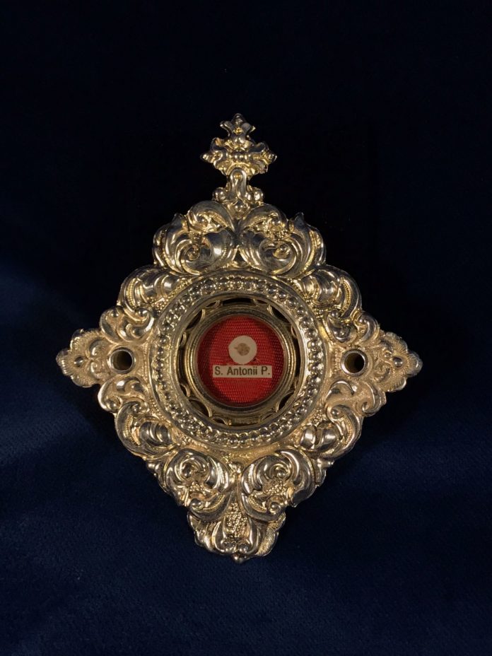La corporación de vísperas detallaba dónde se ubican estas reliquias en las andas procesionales: «Tanto la reliquia de San Antonio de Padua como la de Santa Ángela de la Cruz, se encuentran en relicarios que se ubican en los respiraderos del Paso de Palio de María Santísima de los Dolores, junto a las representaciones iconográficas de ambos Santos.