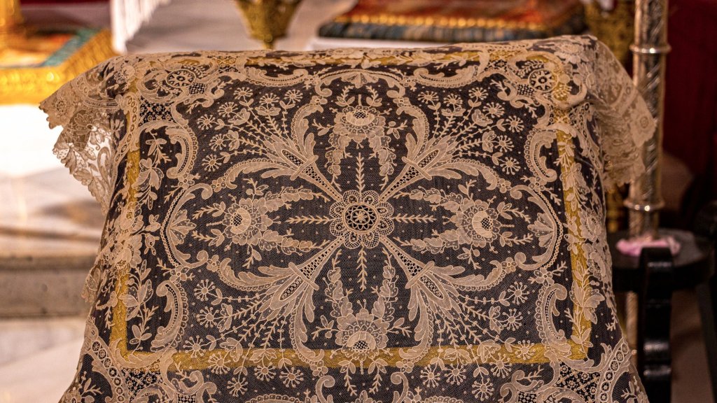 La pieza ha sido bordada por el taller Santa Bárbara siguiendo el dibujo de Javier Sánchez de los Reyes. El acto de bendición de la saya ha estado presidido por el director espiritual de la corporación y párroco de San Andrés D. Jesús Maya Sánchez, Pbro. Igualmente, se ha bendecido un pañuelo donado a la Santísima Virgen.