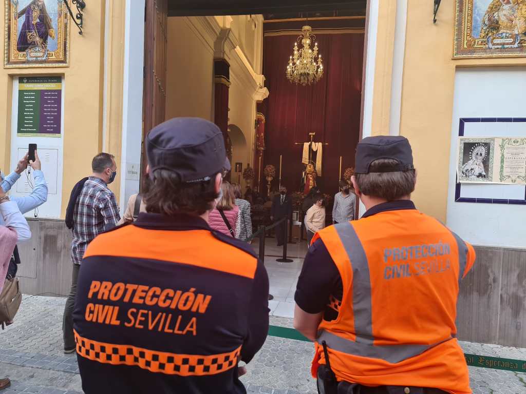 Con respecto a Protección Civil, el delegado Juan Carlos Cabrera ha querido trasladar expresamente una felicitación a su equipo de voluntarios por el respaldo prestado en apoyo al resto de cuerpos y, además, en la asistencia a las hermandades. En este sentido, desarrollaron una formación específica de equipos de autoprotección con las hermandades, con 70 participantes, realizaron 210 apoyos en la ordenación de las colas en los templos y participaron con Bomberos de Sevilla en el diseño de los accesos, al tiempo que dieron apoyo a la Policía Local en 140 actuaciones y a los servicios sanitarios en otras 15 –en el conjunto de la Semana Santa, las asistencias sanitarias ascendieron a 135–. Protección Civil, asimismo, participó en el operativo especial montado en los acceso al pabellón del Sadus de los Bermejales ante el bulo difundido sobre las vacunaciones, que provocó una afluencia masiva de personas sin cita previa, y dio cobertura permanente a los centros de vacunación de Salud en Bermejales y Ramón y Cajal durante toda la Semana Santa, a la vez que se mantenía el seguimiento específico y programado en los templos.