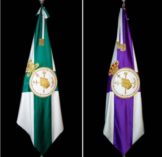 Por su parte, la Hermandad de la Macarena ha recuperado dos banderas que formaron parte de su cortejo procesional hasta mediados del siglo veinte. Se han ejecutado, en el taller de José Antonio Grande de León, en raso de seda formando una cruz en aspa, siendo blanca con la cruz morada en el cortejo del Señor de la Sentencia y con la cruz verde en el cortejo de la Virgen de la Esperanza. En el centro figura el escudo de San Gil en un círculo, rodeado de un rosario, figurando además una corona real en la del Señor y el Anagrama de María en la de la dolorosa. La orfebrería ha sido labrada en el taller de Jesús Domínguez.