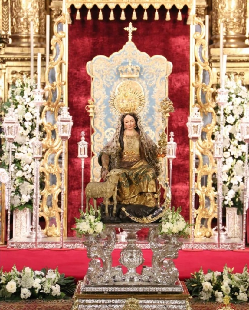 La Divina Pastora de Cantillana ha lucido hoy la corona que entregó el Grupo Joven de la corporación en el día de ayer, por primera vez en su historia. La pieza ha sido labrada por Alejandro Borrero y enjoyada por Lucio Rodríguez.
