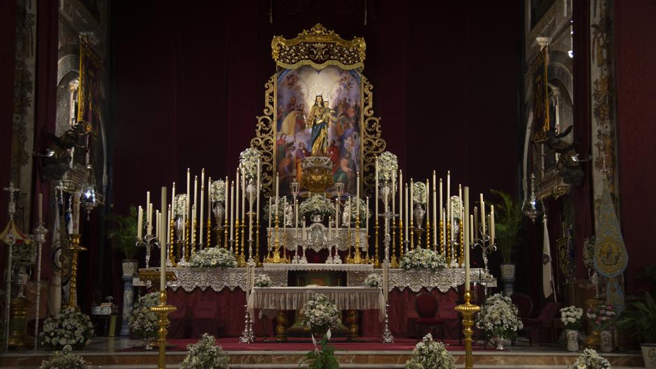 En el altar de novena de María Auxiliadora se puede contemplar durante estos días una recreación de la pintura de María Auxiliadora de la basílica de Turín, un cuadro de Tommaso Lorenzone, el cual fue la base para la advocación tras el encargo de Don Bosco. Se ve en la pintura el rostro de la Virgen sostenido por San Pedro y San Pablo y rodeada de evangelistas.