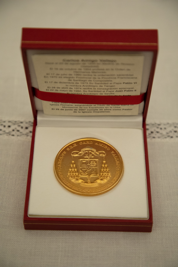 Amigo Vallejo regaló a la corporación de San Gil una medalla con el escudo y la inscripción de su ministerio pastoral, demostrando su cercanía, compromiso y cariño con las cofradías de Sevilla y en especial con la Hermandad de la Macarena.