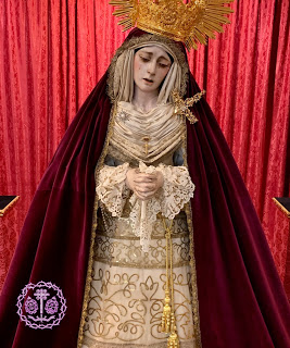 Nuestra Señora del Desconsuelo y Visitación, Titular de la Hermandad de Pasión y Muerte, luce para el Santo Rosario en su honor, varios estrenos donados por hermanos y devotos.