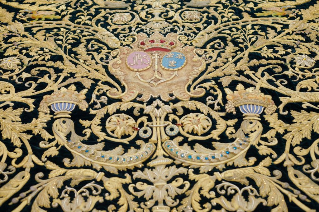 Dentro de este cometido se ha procedido a la retirada del manto de salida de Nuestra Señora de la Esperanza, de la Hermandad de la Esperanza de Triana, culminado y estrenado en el año 1948 y ejecutado por Esperanza Elena Caro, según diseño de José Recio del Rivero, para su limpieza y aspirado por parte del mantenedor de bienes textiles, José Espinar Rodríguez.