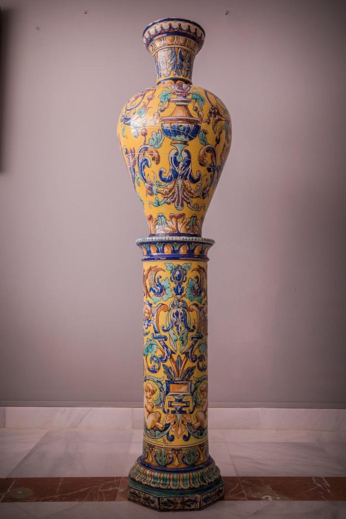 La Hermandad de la Esperanza de Triana ha adquirido un juego de jarrones de principios del siglo XX, con pedestal en cerámica esmaltada en Triana con decoración de estilo neorrenacentista a base de roleos, hojas de acanto, aves, putti, leones alados y cartelas de cueros recortados. Serán empleados en sus cultos.