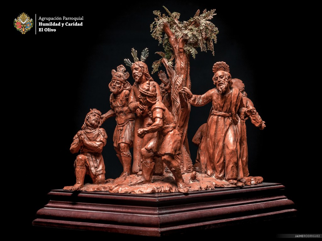 Se presentó ayer sábado en la parroquia de Santa María Madre de Dios, durante el quinario al Cristo de la Humildad, estando presente el propio imaginero José María Leal. Se compone de siete imágenes secundarias: Malco con la oreja ya sanada, dos miembros de la Guardia Judía que prenden a Jesús, los apóstoles Pedro, Santiago y Juan, en la que destaca su presencia junto a un Judas Arrepentido por acusar a Jesús, y en el centro, el olivo.