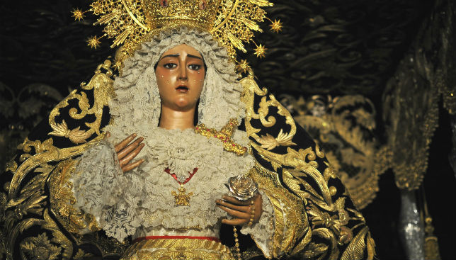 La Banda del Carmen de Salteras ha venido acompañando a María Santísima de la Caridad en su Soledad desde 1980, más de cuarenta años de fidelidad entre la Hermandad y su Banda.