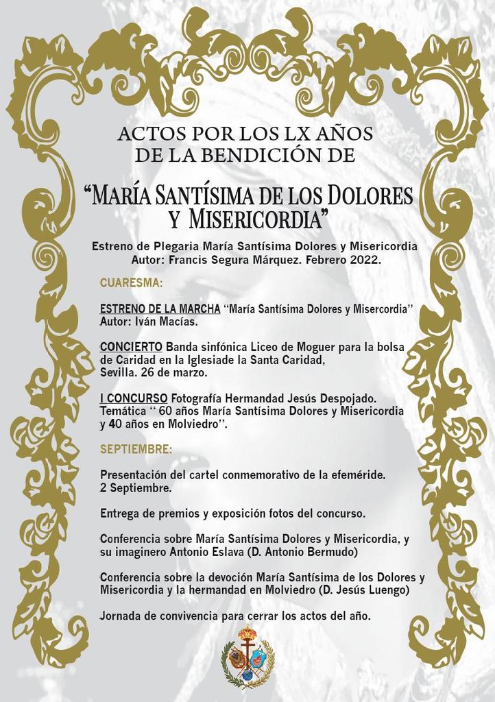 Además, la corporación ha organizado el I Concurso Fotográfico con la temática «60 años de María Santísima de los Dolores y Misericordia y 40 años en Molviedro».