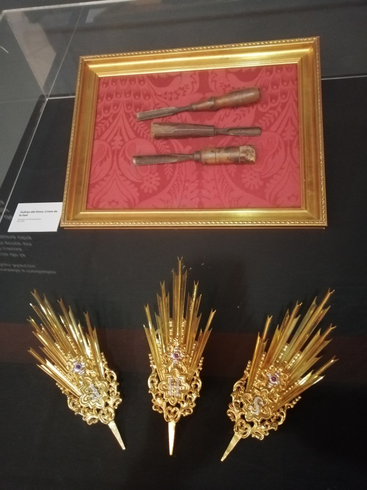 El pasado Miércoles Santo se estrenaron las nuevas potencias del Santísimo Cristo de la Sed realizadas por el orfebre Fernando Marmolejo y bendecidas el Viernes de Dolores. Son una réplica de las robadas en 2020.