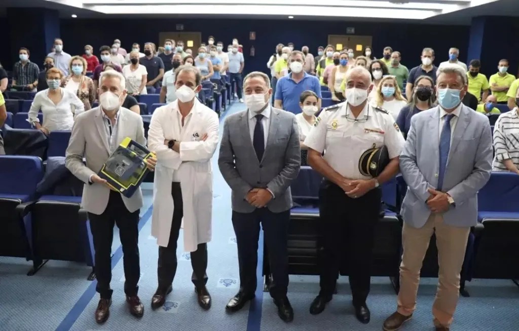El curso de formación en soporte vital básico y desfibrilación semiautomática para primeros intervinientes se ha realizado en el salón de actos del Hospital San Juan de Dios del Aljarafe. El encuentro ha contado con la presencia del delegado del Gobierno de la provincia, Ricardo Sánchez, que ha estado acompañado por el jefe de Servicio de Protección Civil y director del 112 en Sevilla, Antonio Pajuelo, el director del Servicio Provincial del CES 061 de Sevilla, José María Villadiego, y el director gerente del centro hospitalario del Aljarafe, Emilio José García Núñez.