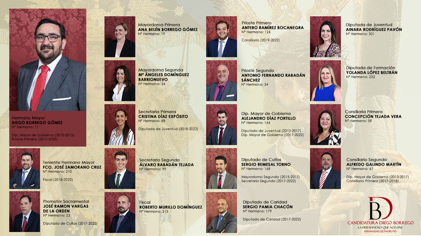 Con el lema «La Hermandad que nos une», llega para tomar las riendas de la corporación durante los próximos años. Ahora solo resta recibir la aprobación eclesiástica oportuna.