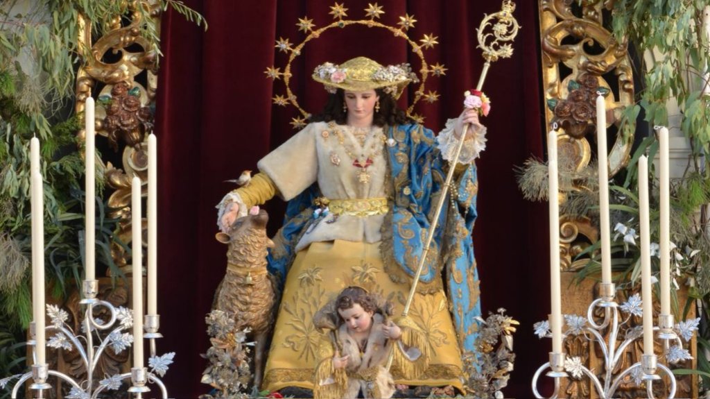 En la pasada Clausura del Centenario de la Coronación Canónica de la Divina Pastora de Capuchinos, la Santísima Virgen estrenó una nueva saya bordada en tisú de oro por Maravillas Fernández y donada por un grupo de devotos.