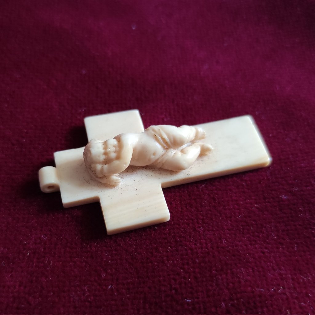 En fechas recientes se ha recibido una 𝗱𝗼𝗻𝗮𝗰𝗶𝗼́𝗻 para la Fraternidad Seglar Mercedaria del convento de San Gregorio. Se trata de una 𝗮𝗻𝘁𝗶𝗴𝘂𝗮 𝗰𝗿𝘂𝘇 𝗱𝗲 𝗺𝗮𝗿𝗳𝗶𝗹 𝗱𝗲𝗹 𝘀. 𝗫𝗜𝗫 con la peculiaridad de presentar, tallado en la misma pieza, al Niño Jesús dormido. Esta nueva presea ha enriquecido el ajuar de la Virgen de la Merced.