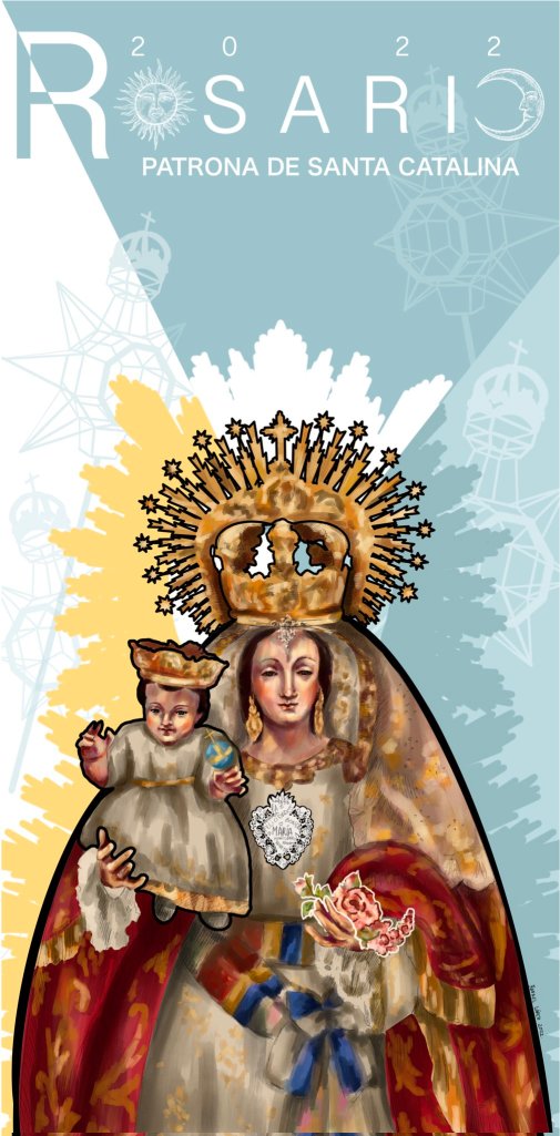 La Hermandad del Rosario de Santa Catalina ha presentado el cartel anunciador de los cultos de la Virgen en el mes de octubre, obra de Rafael López Tello. En el fondo, de colores celestes y blancos que aluden a la Virgen, aparecen los faroles de la Estrella que acompañan al simpecado.