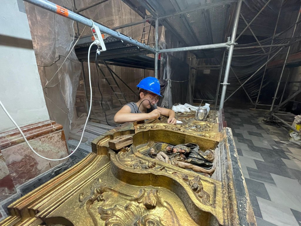 La Real Parroquia de la Magdalena ha anunciado que otra fase de su restauración ha sido completada. Dentro de las labores de restauración de las valiosas pinturas de la nave del Evangelio, también avanzan los trabajos de fijación y limpieza del dorado y policromía del Retablo de Ánimas.